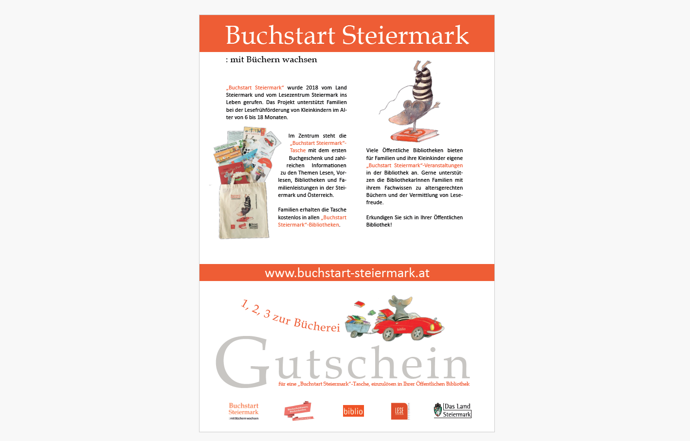 „Buchstart Steiermark“, Gutschein mit Kurzinfo