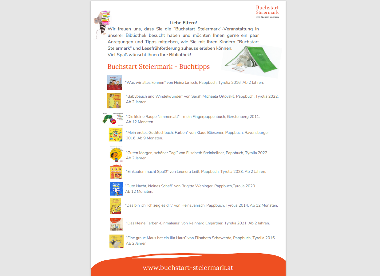 In dieser Broschüre finden Sie Ideen für eine „Buchstart Steiermark“-Veranstaltung.